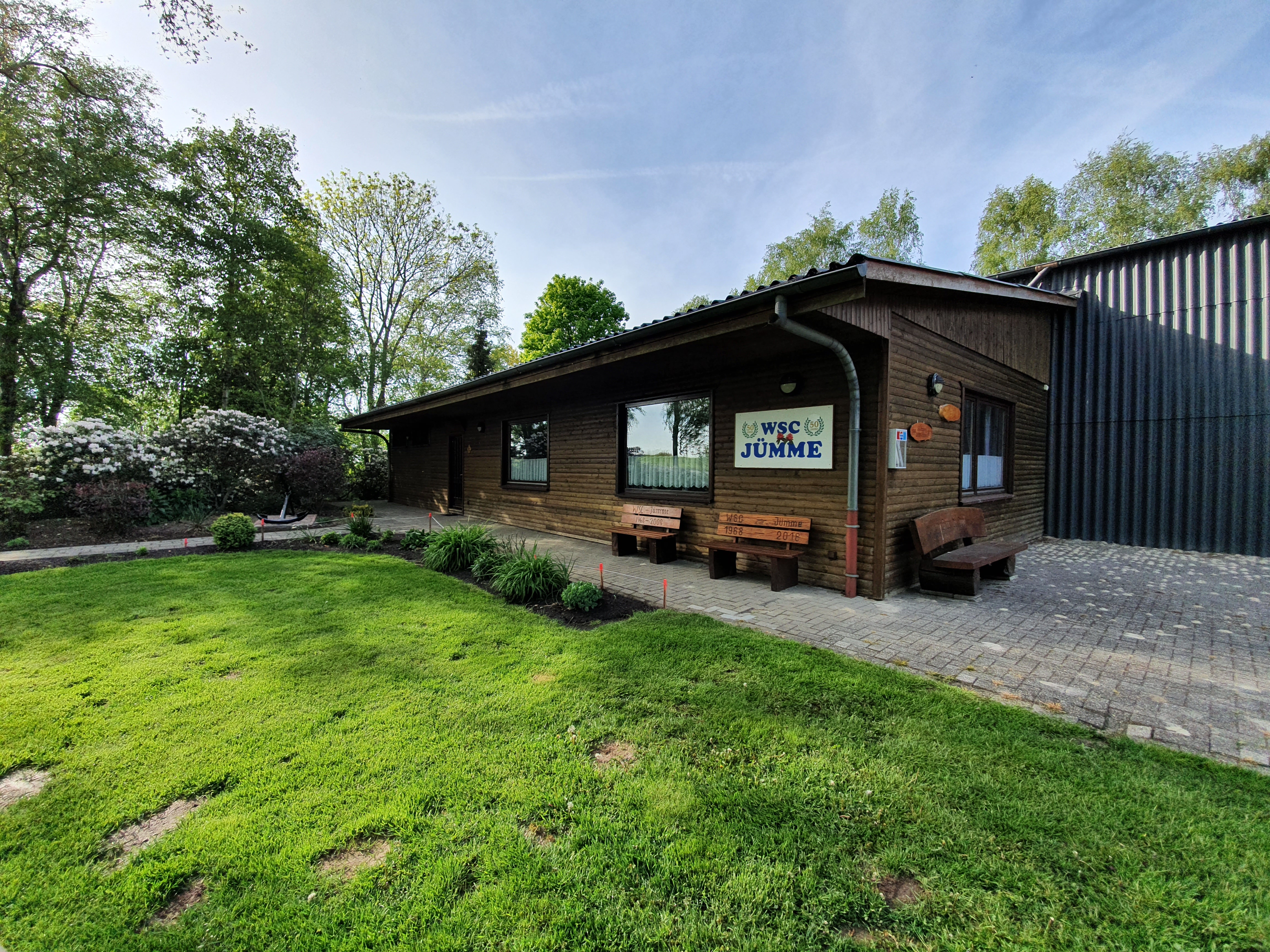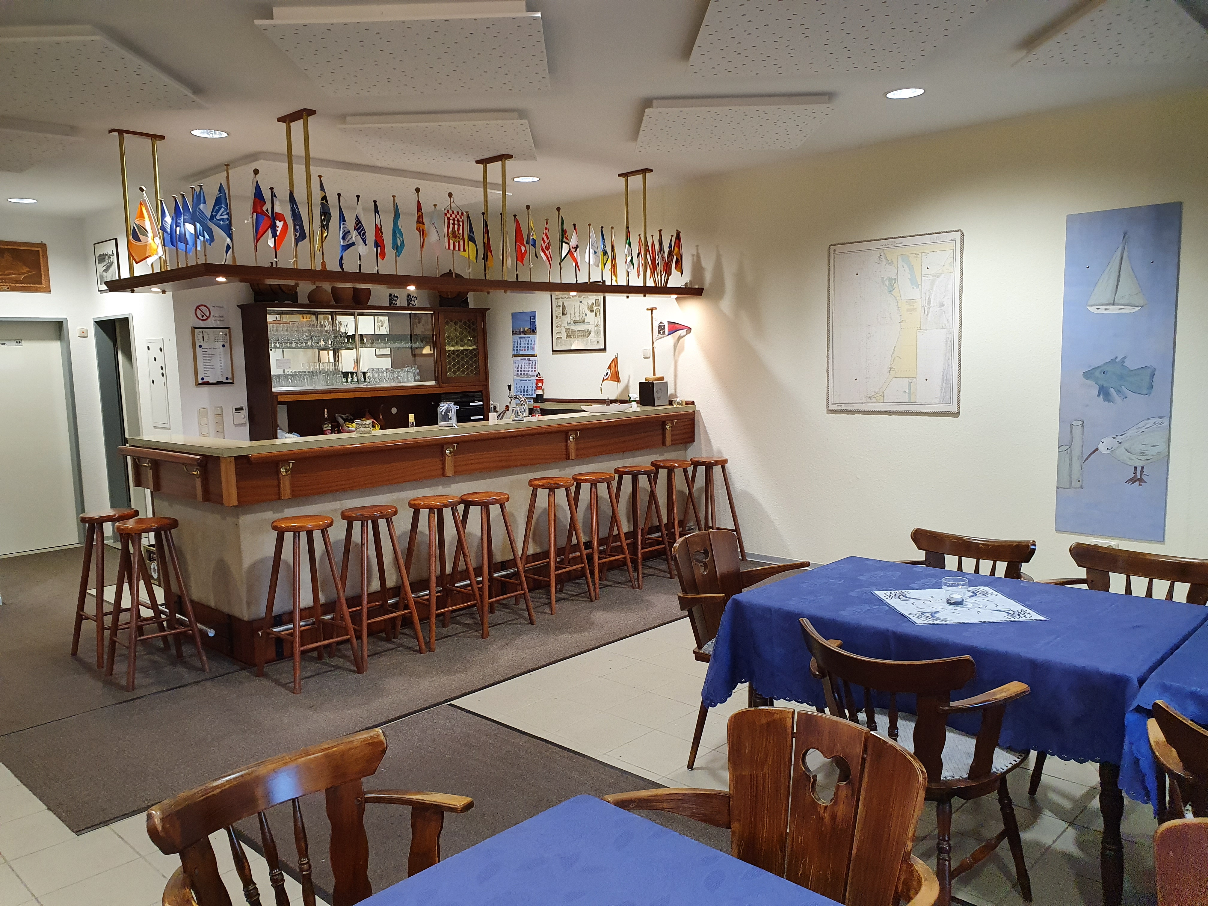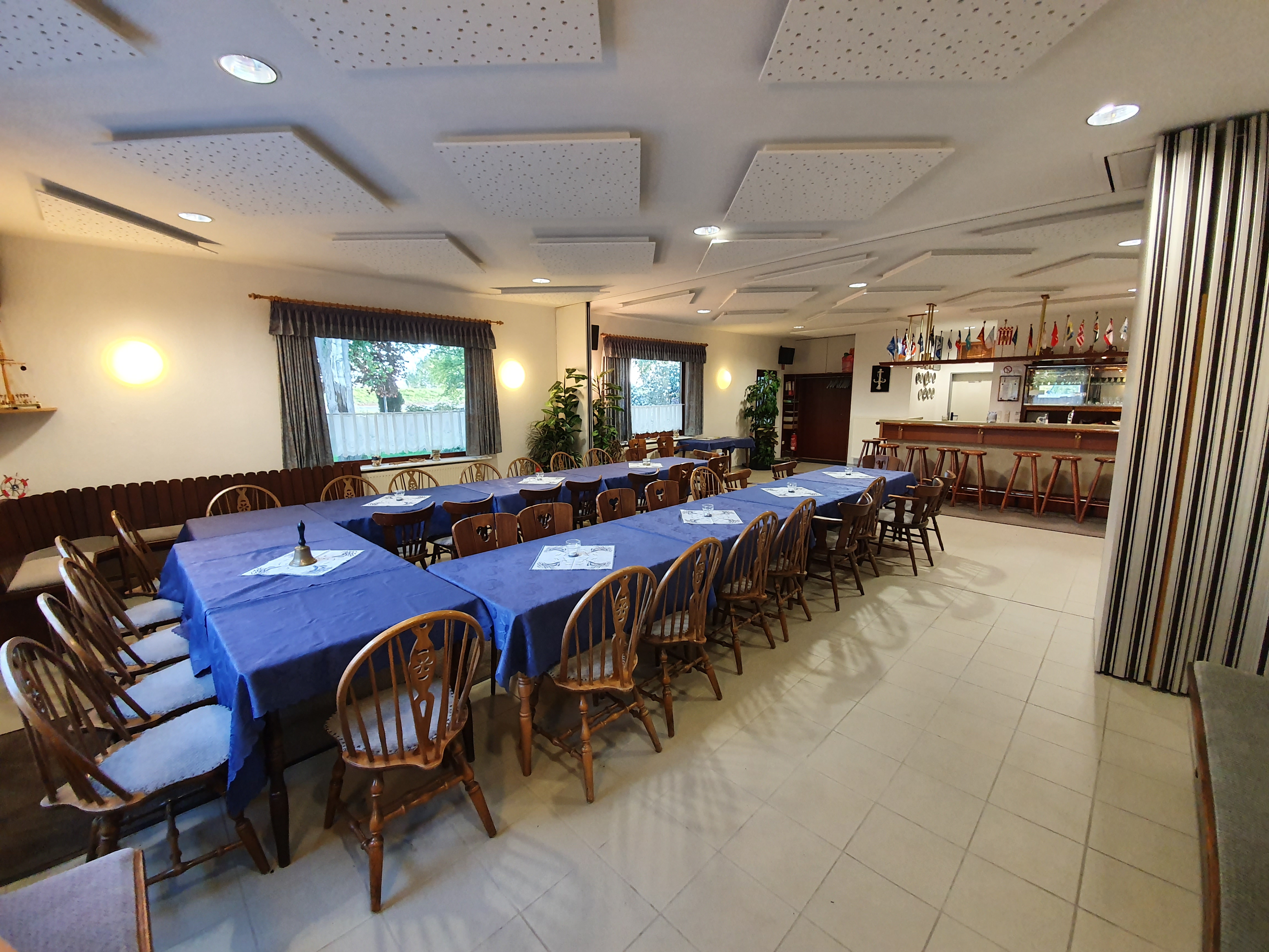Unser schmuckes Bootshaus, 1997 erbaut, bietet Platz für bis zu 80 Personen. Es verfügt über einen teilbaren Saal, eine große Theke mit Kühlung, eine kleine Küche und Sanitäranlagen mit getrennten WCs und zwei separaten Duschen. Diese sind vom Saal, sowie einem eigenen Eingang von außen zu erreichen.