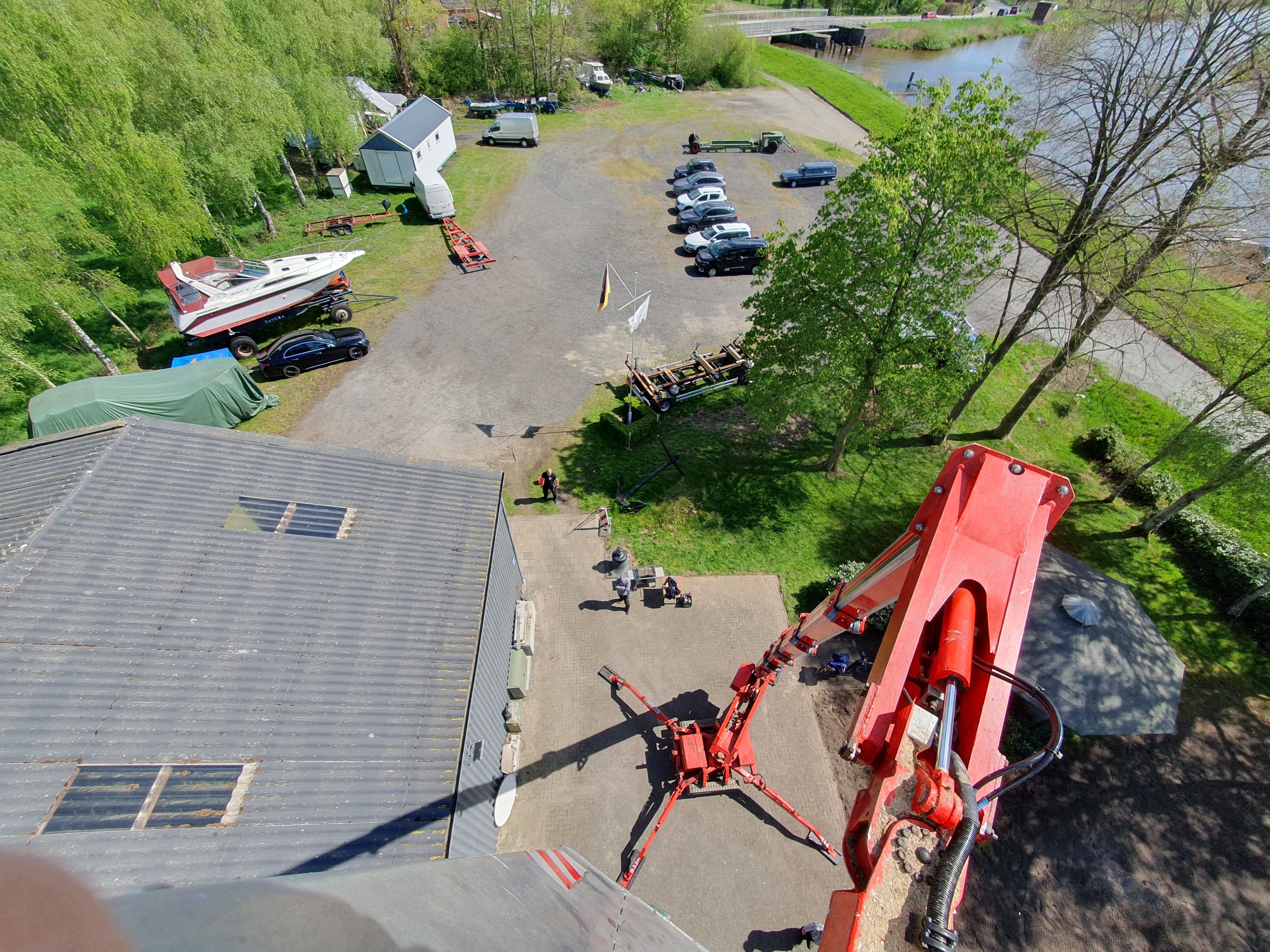…sie haben es dringend nötig Blick aus der Hebebühne auf unser Grundstück