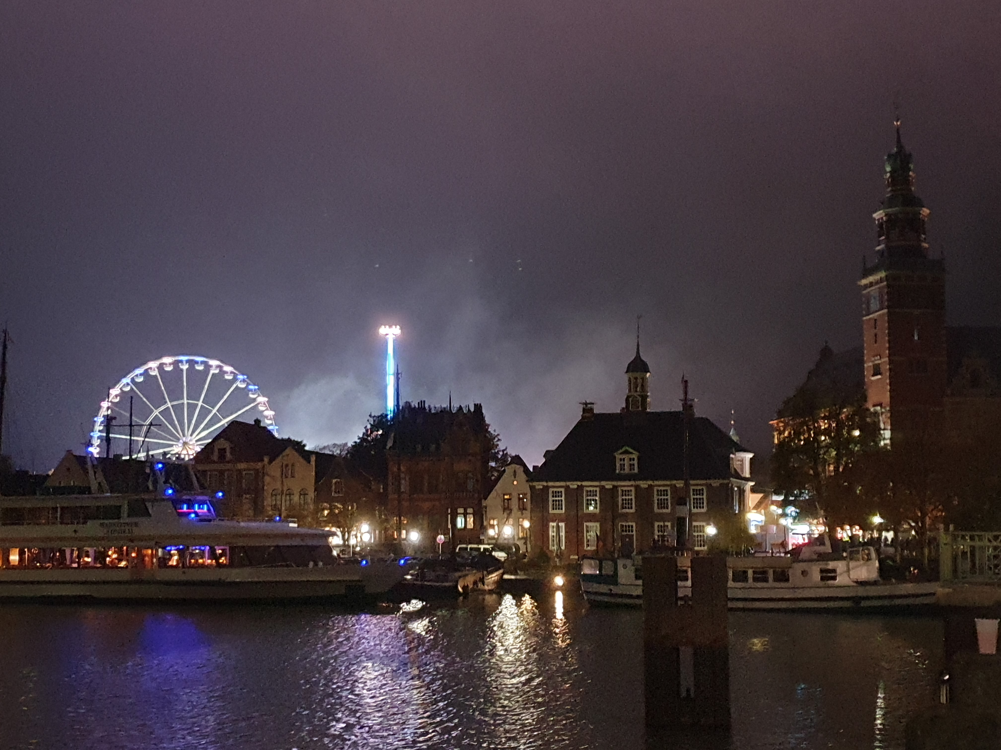 Silhouette von Leer während des Gallimarktes Lampionfahrt im Freizeithafen Leer