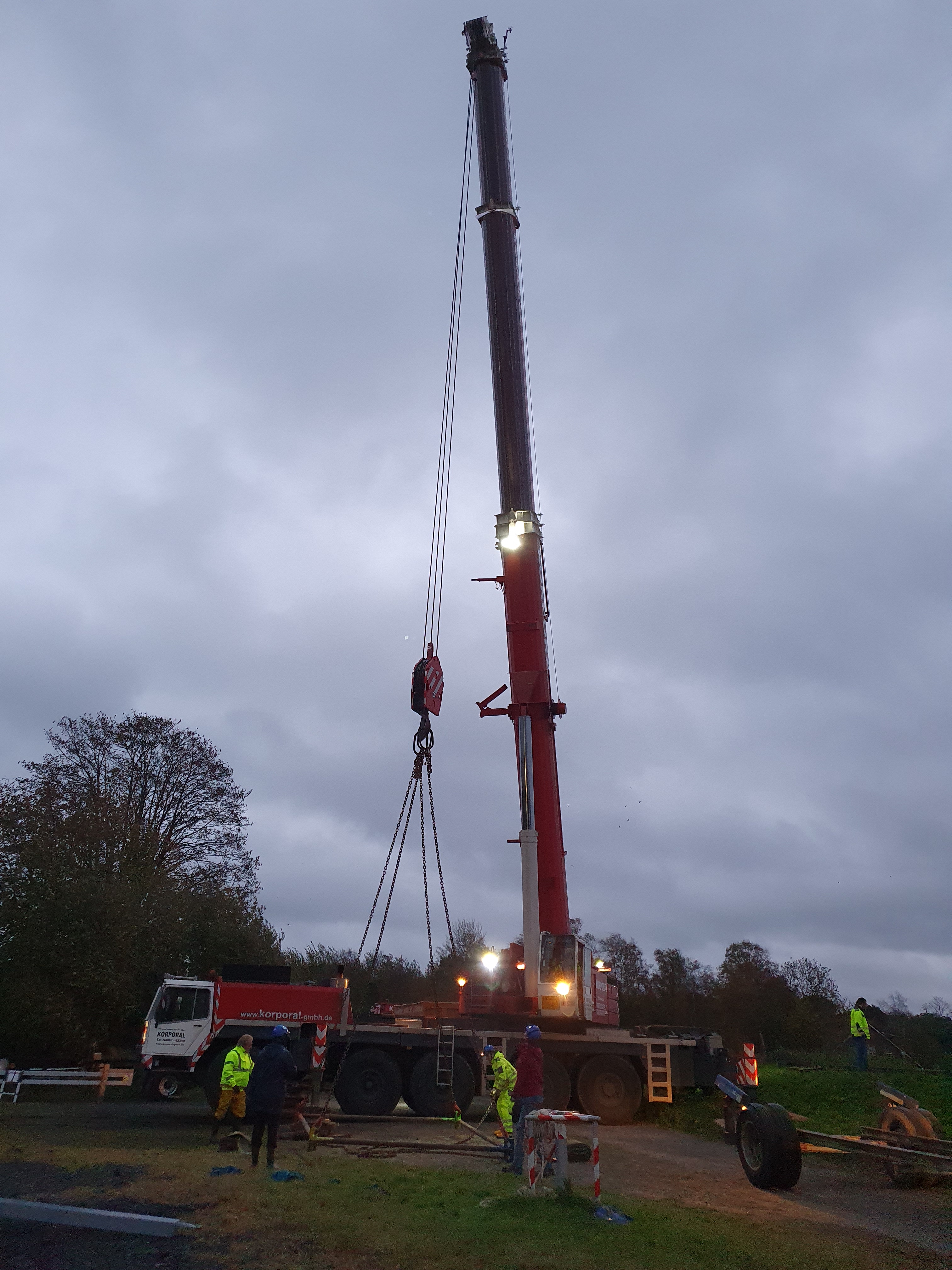 Das Bootekranen ist für den 25.10. geplant. Seit einigen Tagen haben wir windiges Wetter. In Rücksprache mit dem Kranunternehmen und dem Kranführer wird das Kranen pünktlich durchgeführt. Während des Kranes ergibt sich ein größeres Problem, weil das Sperrtor in Leer an diesem Tag wegen erwartete Regenfälle auch schon bei einem sehr niedrigen Wasserstand zugemacht hat. Erwartet haben wir höheres Wasser, damit wir zum Schluß die größeren Boote aus dem Wasser holen. Für alle Beteiligten ist es eine große Herausforderung alle Boote ohne Blessuren auf die Trailer zu bekommen. Mit großer Erleichterung genießen anschließend alle Teilnehmer den vom Festausschuß bereitgestellten Imbiss.