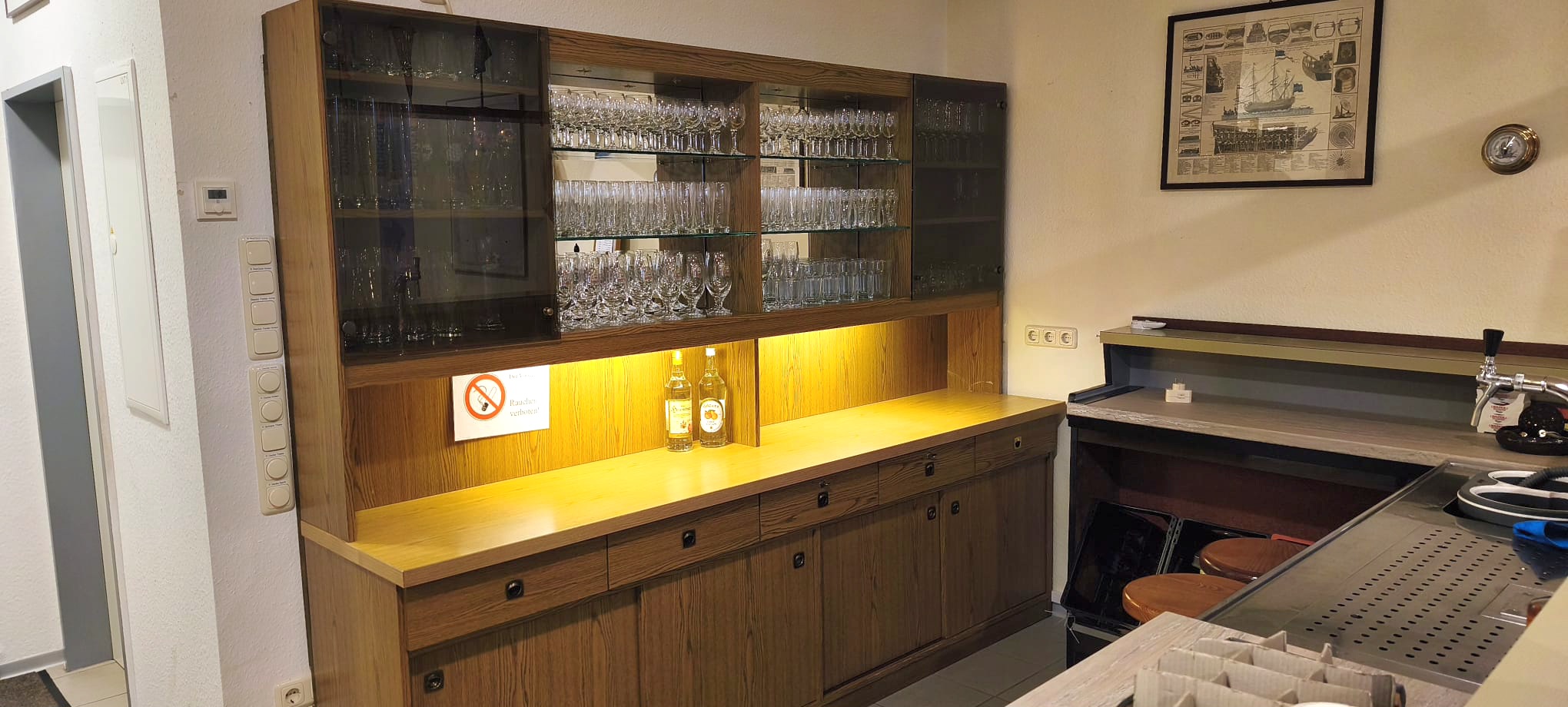 Für unser Bootshaus haben wir günstig Tische, Gläser und weitere Einrichtungsgegenstände aus einer Restaurantauflösung erwerben können. In diesem Zuge wird auch die Elektrik im Bootshaus auf den neuesten Stand gebracht. Unter Leitung des Festausschusses werden weitere Modernisierungsarbeiten bei der Bootshaus-Inneneinrichtung vorgenommen.