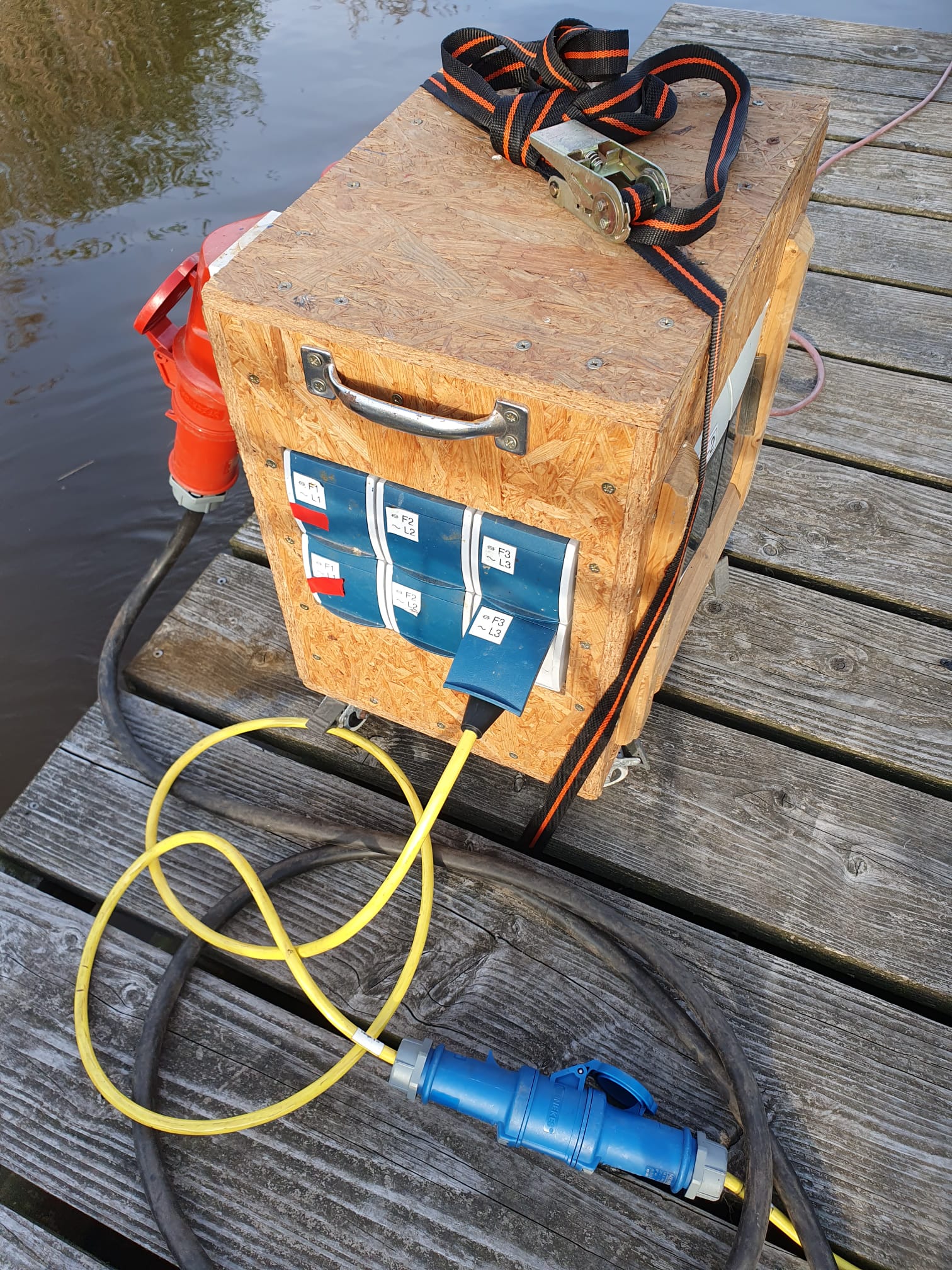 Neuer Holzaufbau bei einem Ponton von Steg West Notstromverteiler während der Elektrosanierung
