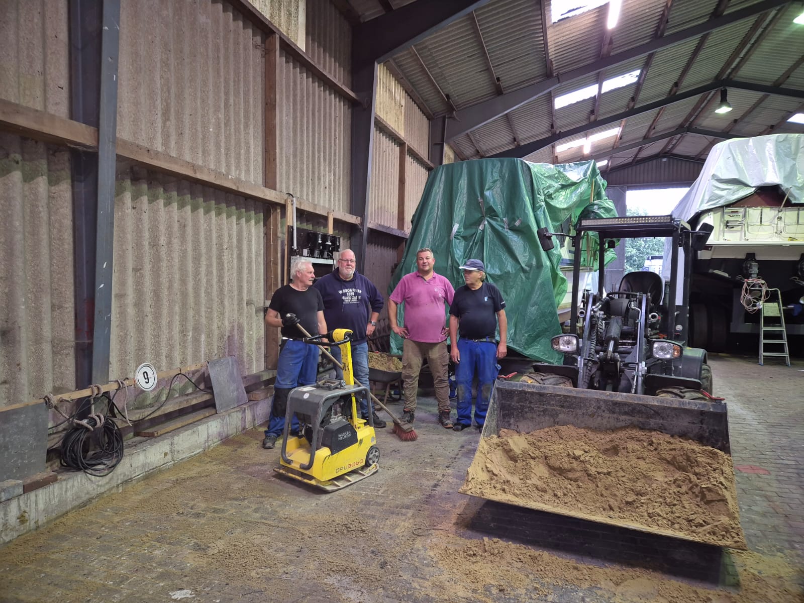 Bevor die Boote wieder in die Halle kommen, müssen noch Arbeiten an dem abgesackten Boden im hinteren Bereich der Halle durchgeführt werden. Dank der Fachleute aus unserem Verein ist das Problem schnell gelöst und die Boote können kommen.